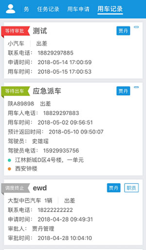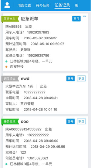 首页 待办任务 短信提醒 调度看版 用车费用记录 用车评价 小程序位置 小程序用车申请 小程序待办任务 小程序任务记录 任务详情 小程序审批调度 车务在线小程序