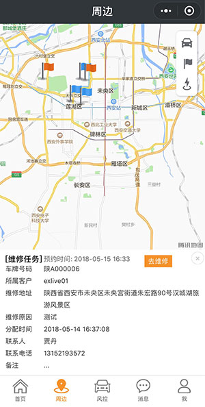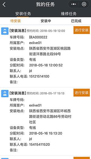 更增加4种业务,BS端与移动端相结合实现安装任务、维修任务、暗访任务和追车任务,协助安装工、业务员、追车团队完成任务,任务记录查询。